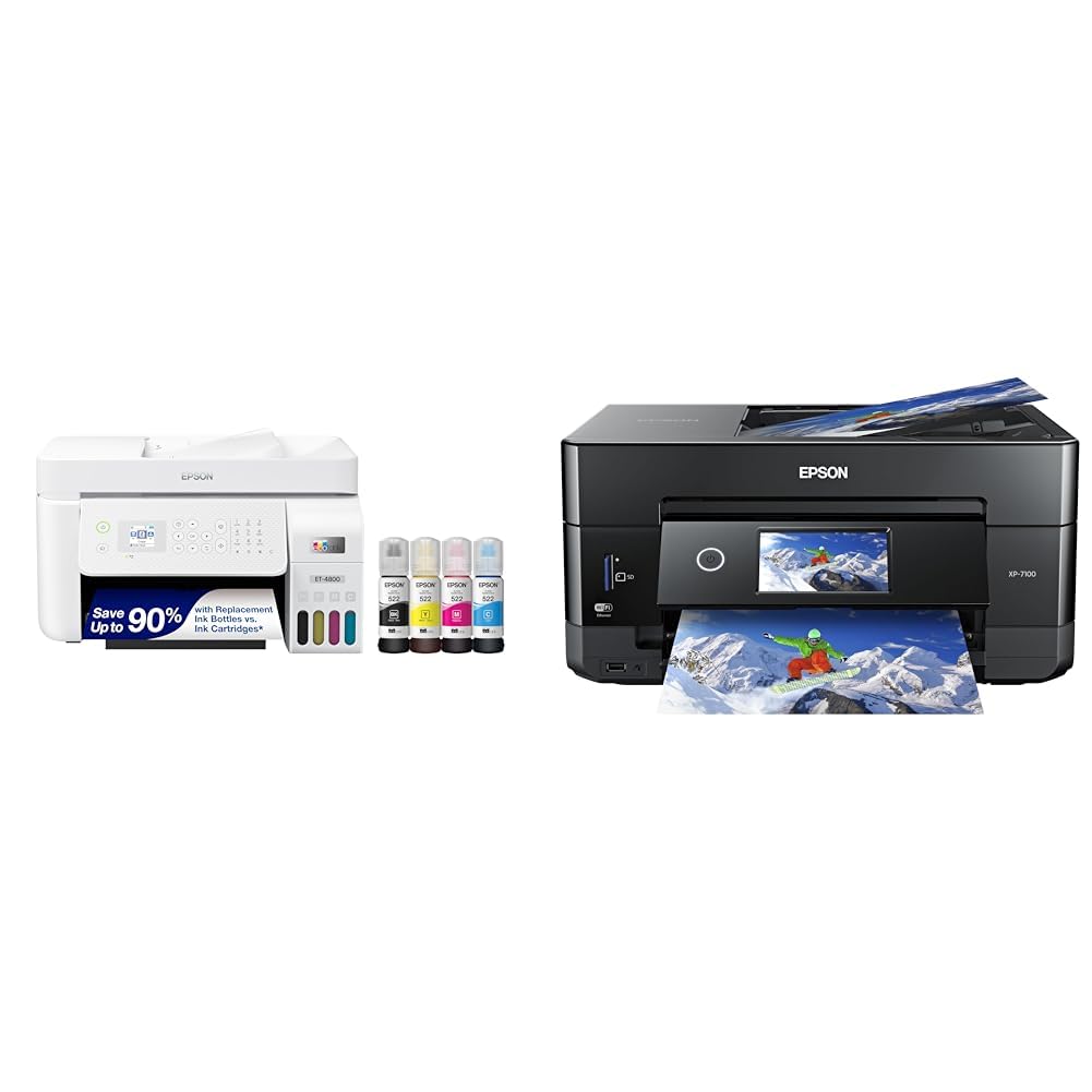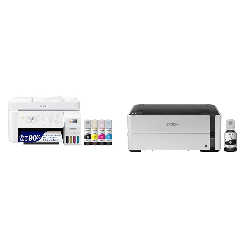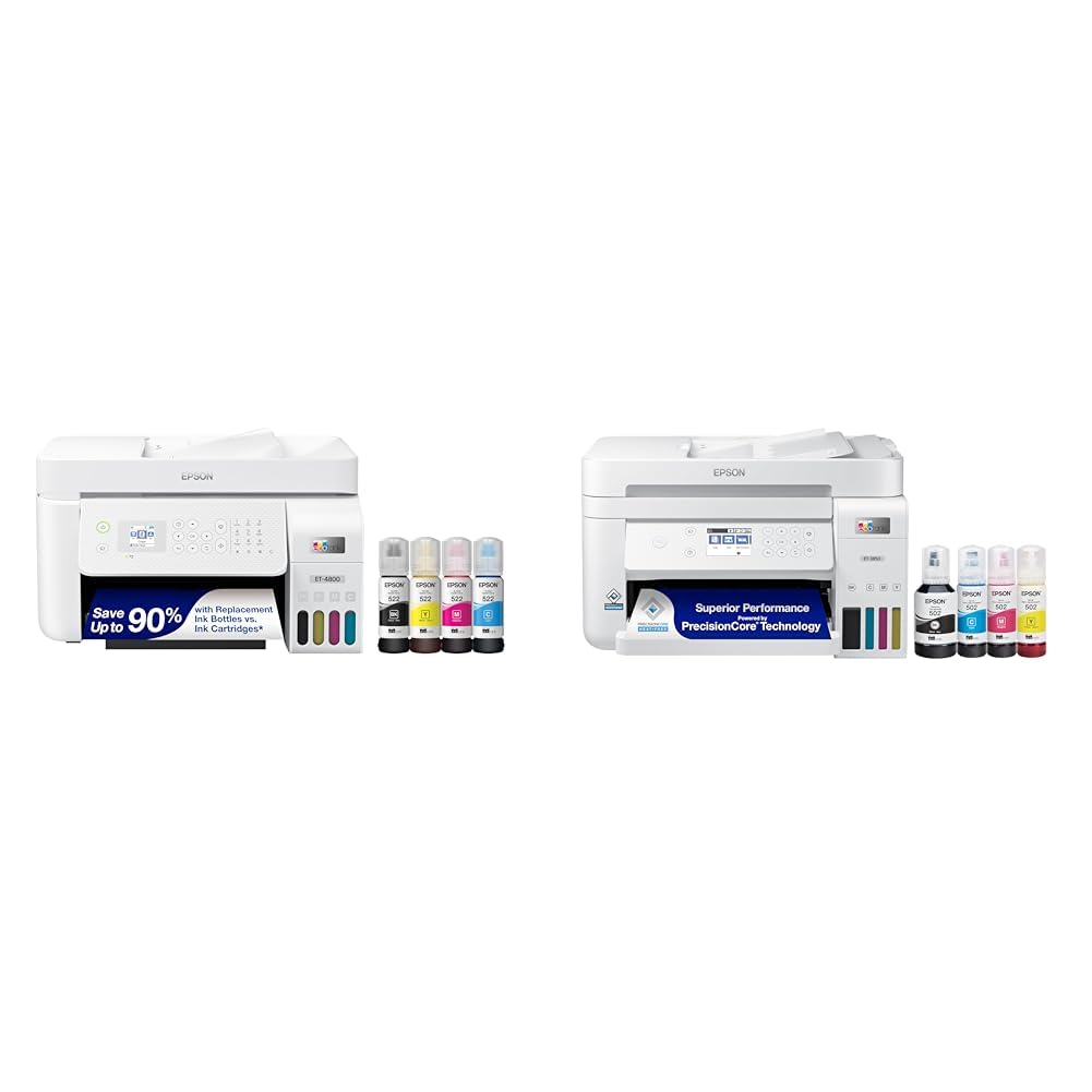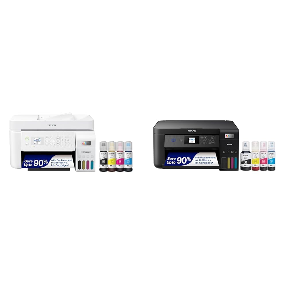 Epson strongly recommends the use of genuine ink to ensure optimal print quality and performance. Use of non-genuine ink could cause damage not covered under the printer’s ltd. wnty. | 1. Actual savings and costs will vary considerably based on print tasks, print volumes and usage conditions. Savings and cost per ISO page are based on the cost of replacement ink bottles and the cost of enough standard cartridges to achieve the total page yields of the bottles using the MSRP (USD) and yields for Epson standard-capacity ink cartridges for similarly featured Epson consumer inkjet printers as of March 2024. | 2. Individual cartridges estimate based on print yields of an included or replacement set of black and color ink bottles as compared to Epson standard-capacity ink cartridges for similarly featured printers as of March 2024. | 3. Part of the ink from the included bottles is used for initial setup; yields are lower than those of replacement ink bottles. Replacement and included ink bottle yields based on the ISO/IEC 24712 pattern with Epson’s methodology. Actual ink yields will vary considerably for reasons including images printed, print settings, temperature and humidity. Yields may be lower when printing infrequently or predominantly with one ink color. All ink colors are used for printing and printer maintenance, and all colors must be available for printing. For more information, visit www.epson.com/inkinfo | 4. Based on average monthly document print volumes of about 125 pages. | 5. See www.epson.com/voice for device compatibility. Epson Connect account and voice-activated account registration required. | 6. Most features require an Internet connection to the printer, as well as an Internet- and/or email-enabled device. For a list of Epson Connect enabled printers and compatible devices and apps, visit www.epson.com/connect | 7. Requires Epson Smart Panel app download. Data usage fees may apply.
