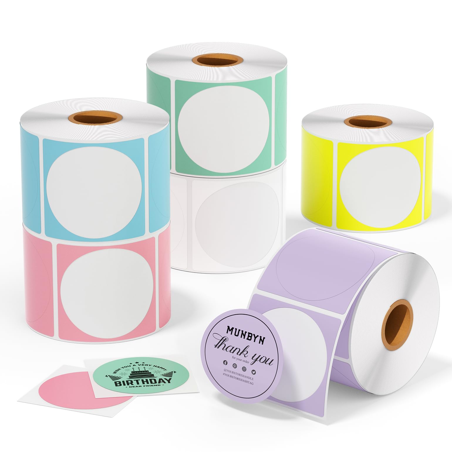• Munbyn Generic(GR) 2-Inch Round Thermal Labels: Featuring 750 labels per roll (2" circle, 1 roll, white), these labels require no ink, toner, or ribbons. With a 0.98" paper tube diameter and a 3.38" paper roll diameter