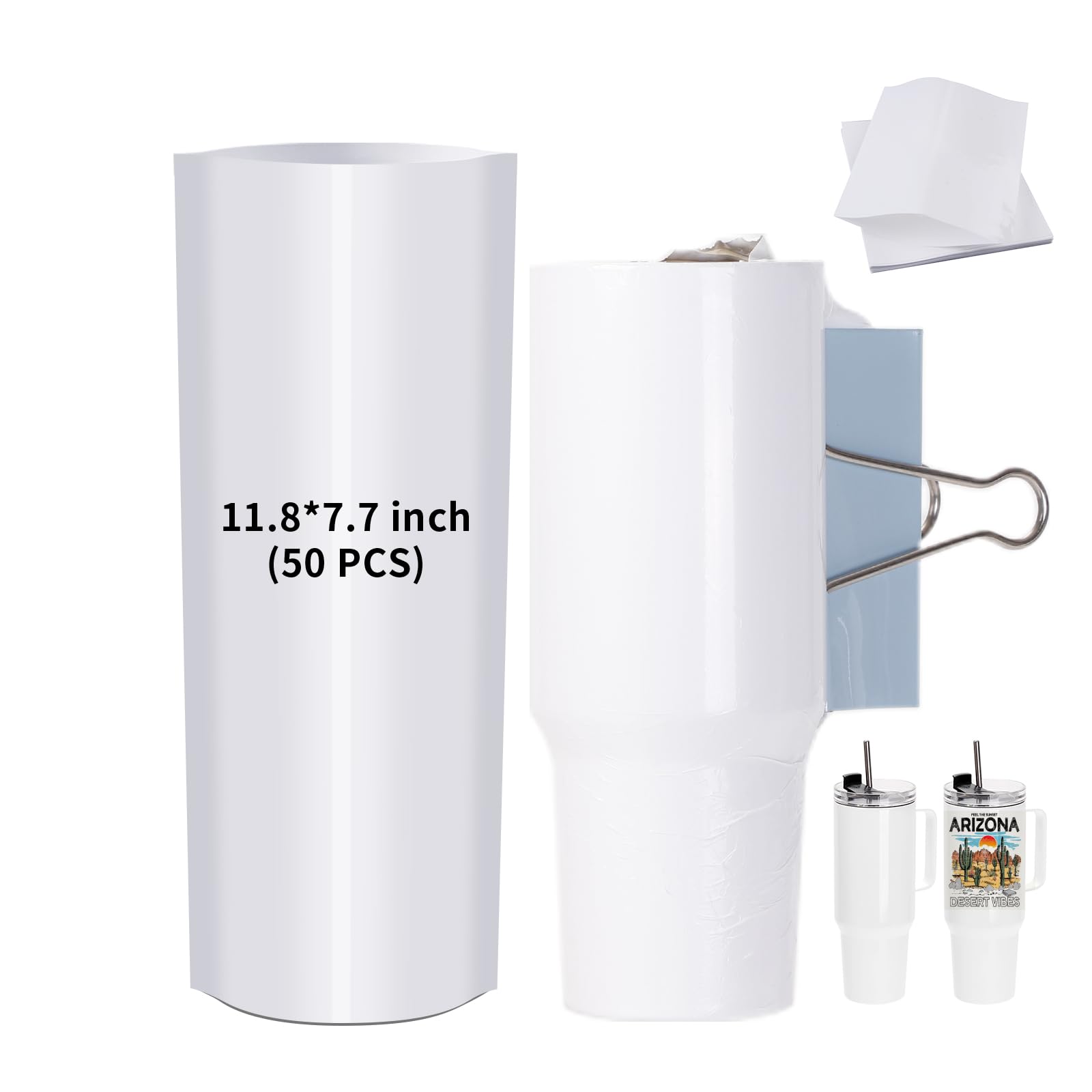 PYD Life 50 PCS Sublimation Shrink Wrap Sleeve White Bags 10 x 5 Inch for Print by Oven,Sublimation Shrink Wrap Film for 20 OZ Sublimation Skinny Tumbler,Heat Transfer Shrink Wrap